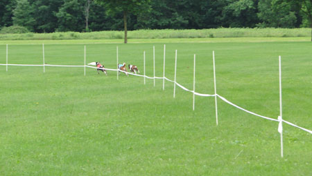 Practices: Karen Christensen ran the lure for the youngsters' practices. "it was a real pleasure to run the lure for them. Susan and I both observed a certain stripey boy puppy runs quite flat (efficiently) like his sisters, who are a force to be reckoned with."