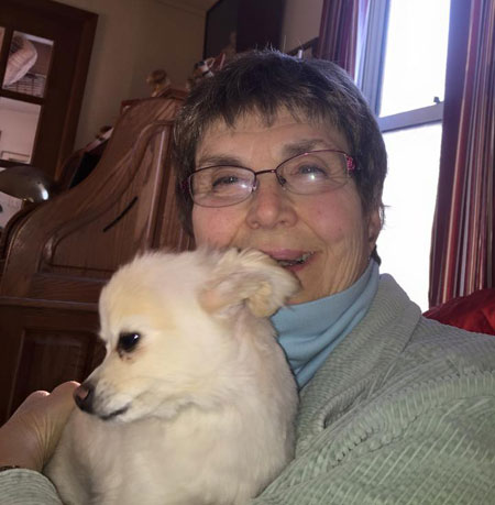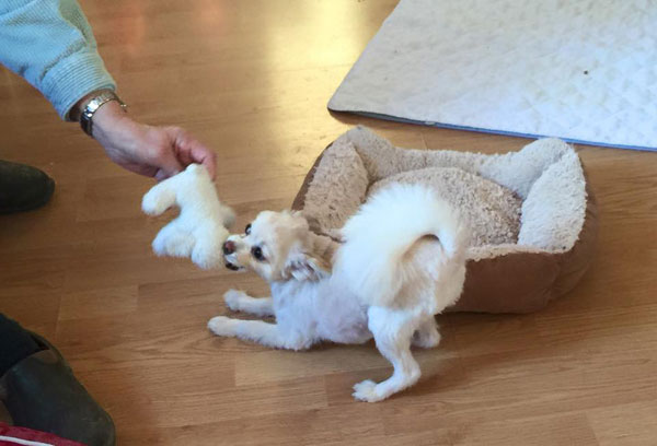 A year later, Bree and Co. are now losing their house and Tiffany needs to be relocated. I kept my word and said I'd take the dog, meanwhile thinking that I did NOT need dog #7, but no way would I let this little girl fall into the wrong hands. My plan was to foster Tiffany until I could find a new mommy for her. The pieces were about to fall into place. I was on Facebook chatting with Louise Cacchio, who is very involved with fostering, keeping, training and living with lots of dogs. This person used to breed Chihuahuas, so she was a good small breed connection. She said, "I bet Garrett will want this dog." Garrett O'Dell is a retired teacher {Ed: RVW member, taught high school art}, lover of Pomeranians, kind person, and all-around spit-fire. I've known her for a long time, from my days of working at the animal hospital where she brought (and still brings) her dogs. It only took a few facebook messages and phone call and Garrett did indeed want this dog!! All I had to to was make the arrangements! The next week, we had the re-homing of Tiffany. Bree, Garrett and Louise met at my house so Bree could give Tiffany to Garrett in person. It wasn't easy for Bree, and there were lots of tears, but it was the right thing to do all the way around. Tiffany, now called Kate (thank God) has bonded to Garrett, and is now part of the Doggy Social Hour she goes to on Wednesdays. Garrett was looking for a young female dog she could train. Bree has peace of mind that Kate is in a good home, and I don't have to have 7 dogs. This is the Meant To Be part of the story, in case you couldn't tell. I feel good about this Mitzvah and really hope that it negates some of my, er, less favorable Karmic points.