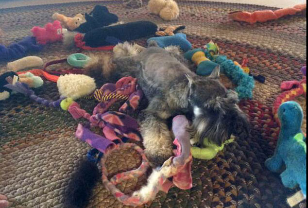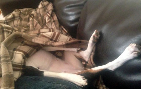 Leslie Nelson. "It's a damp chilly night and Mr. Bill has a new haircut. Good thing he has his own afghan!"