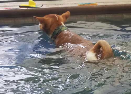 Chris O'Rear - "It's official Mellie is a swimmer. Unfortunately she took everyone in with her when she jumped but at least Swagger caught the fish while he was in there." Swagger in the pool below.