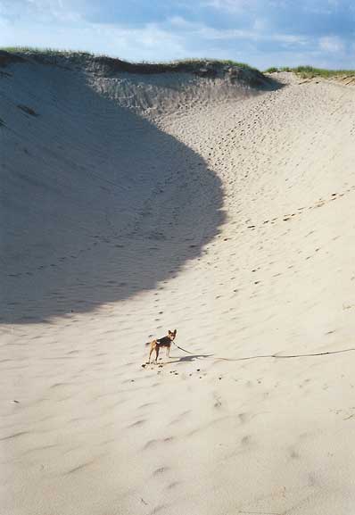 Karen Christensen: Not to trivialize how amazed I was when Tutu waded in - the leash is let out here because Ian was insistent on going .away. from the water.