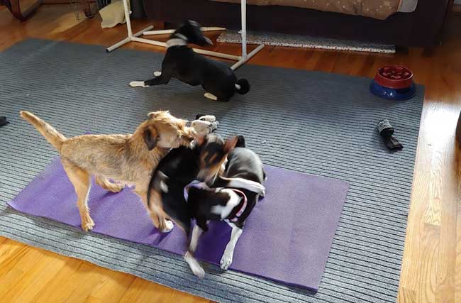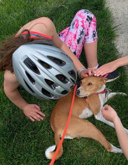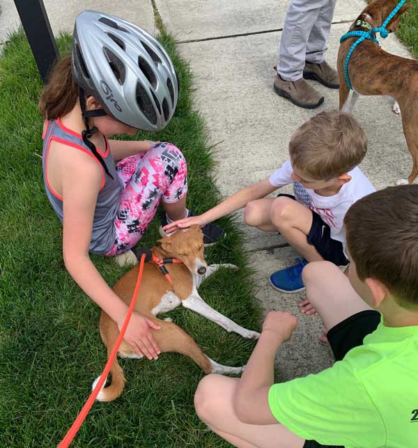 Tutu threw herself at the feet of Winter Petteruti and her buddies in my neighborhood and insisted on being petted. Rip also got in on the goods; Rose avoided the camera but she is just silly for Winter. Tutu has really hated the isolation and avoidance of hands when we walk. You can see how delighted she is with the attention!