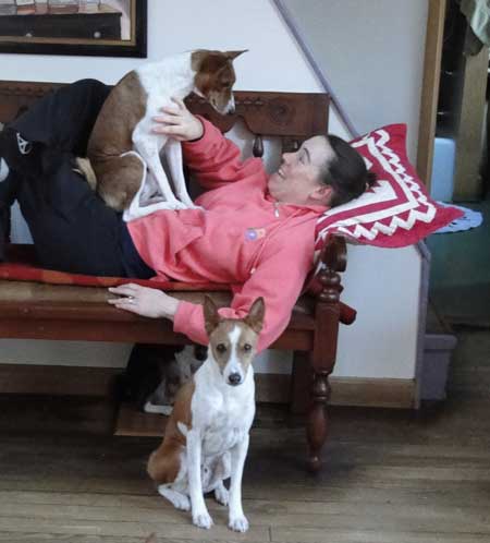 In honor of their 13th birthday, that day, of Laser and M, the group sang “The Star-Spangled Banner,” and most of the 11 basenjis present howled along. The video can be seen on YouTube.
