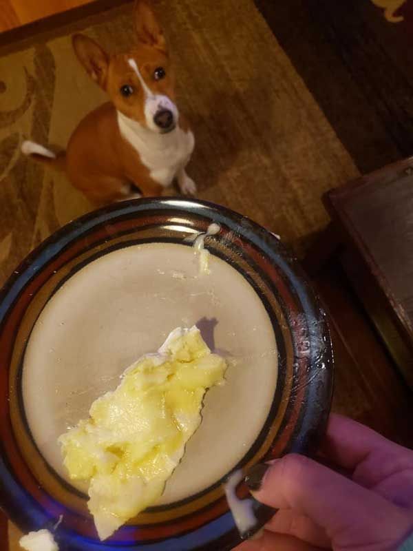 Lisa Blondina - "This was a whole Brie cheese wheel when Dan and I left the room for 30 seconds with a sleeping Basenji - apparently she was not sleeping!!"