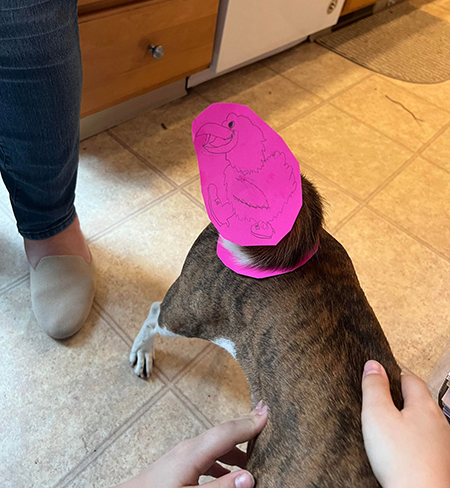 Hannah drew a very nice Jayhawk & turned it into a “tail decoration” (all her own idea & it cracked me up). So Jasper would have some “KU gear” to wear. As Hannah said Ivys tail is too loose to hold a decoration in it lol.