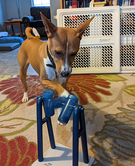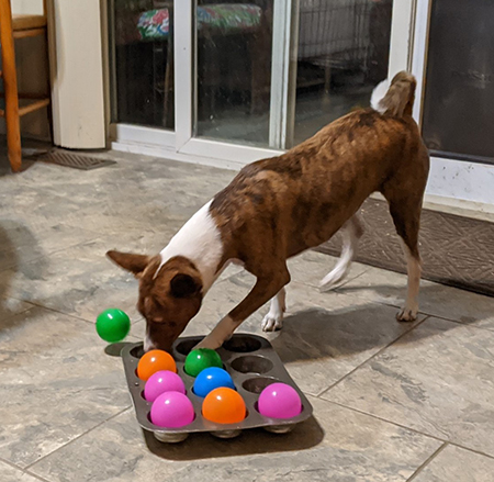 Peggy Pick I’m always trying to think of fun challenges to entertain Tiegan and Miles. They have some new puzzles and games they really like. Anything that somehow dispenses treats is well received. We have a toy that reminds me of the popper part of old push toys. Pushing it cause treats to pop out the top, like popcorn. The tumble tubes are great fun, as is the tower of puzzles, etc. The muffin tins with treats covered by plastic balls still entertain as long as they only play with these occasionally. Paper towel tubes with a couple of treats inside and the ends folded up are fun to dismantle. The Buster Cube and wobble Kong are always fun. I think I will always be on the hunt for new games and puzzles to mix in so they don’t get bored.