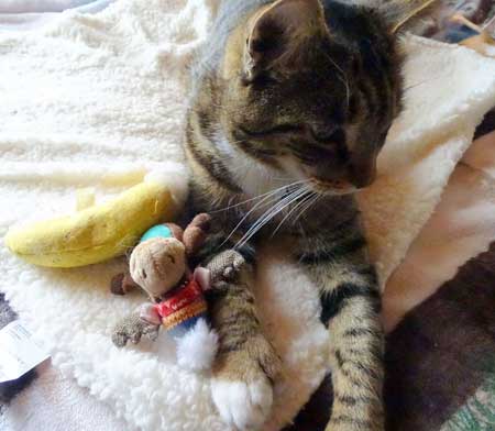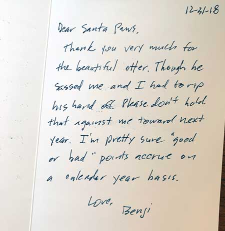 "I got my Santa Paws exchange gifts today. They were awesome toys! Ollie loves them but wants to play with them on top of Penelope’s head. The struggle is real." Patricia Rivers