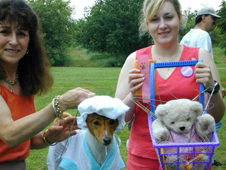 March 28th, 2013. Dear Susan, It's been many years since we were in touch and it is always so wonderful to receive your news letters. Zero, as you know is 13, which makes Walker 17! (All rather mind bending) They have both grown up quite nicely and Zero is now an elder statesman. He spends most days sleeping, but still manages to get up for a walk, and enjoys his chicken and yams. Here's a photo of our boys for you to see. I hope all is well with you and your pack.........................SUZANNA FROSCH April 4st, 2013 Hi Susan, Charlotte saved a Tuesday Science Times section for us a month ago when she visited, as she knows I enjoy reading these. The following snippet (quoted in full from a brief summary) CRACKED me up! File this under "Someone actually spent research time & money on that!?" Those Sneaky Dogs Take 84 dogs. Put each one in a room with food on the floor and instruct the dog to leave it alone. Try it in a dark room and a nicely lit room. What will happen? According to a study in the journal Animal Cognition, “the dogs were four times as likely to steal the food — and steal it more quickly — when the room was dark,” The study leader, Juliane Kaminski of the University of Portsmouth in England, explained how this shows us that dogs know a thing or two. “It implies dogs understand the human can’t see them, meaning they might understand the human perspective,” she said in a news release. From The Week (a science news roundup), by Jennifer A. Kingson for the NY Times, 25Feb13 Now, what good basenji owning family didn't already know that their dogs are sneakier behind their back!? If you only saw Kunjo and Obike with friends visiting you would think they were angels of dogs, rather than the secret monkey demons that scurry about when everyone is out of the room and there are cupboards to open, trash to knock over, and now baby toys to steal! By-the-way, I checked out the UofPortsmouth press release by the researcher, pyschologist Juliane Kaminski, and I was very pleased to see that she's a hound owner too; theres a handsome ridgeback boy in her photo. Maybe ridgebacks aren't as sneaky as basenjis, otherwise I can't figure out why the pyschologist would bother proving this in a study............NATALIE CULVER April 1st, 2013 New Basenji book In Bad Basenji! a young girl describes the silly antics of her mischievous dog, Bongo. Just when it seems as though Bongo is always misbehaving, the girl remembers everything good about him. Engaging text and vibrant illustrations skillfully capture the unique characteristics of this charming dog breed. This entertaining story will amuse young children as they learn there is a good side to most everybody and everything—even a bad basenji! This read-aloud favorite will have kids joining in the fun to shout “Bad Basenji!” whenever Bongo misbehaves.