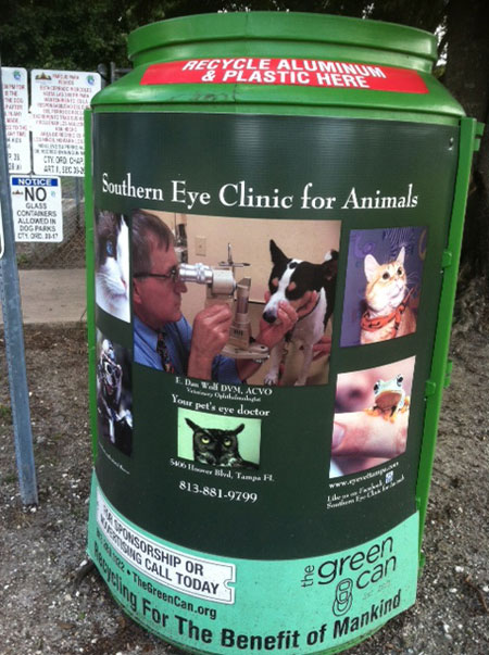 FIRST WORDS (2004) by Brenna Fender My son is working on his first words. They aren't clear, but he repeats them after you say them, so I know what he is trying to do. He is only eleven months old, so it isn't like he is speaking really clearly or anything. Especially since he didn't choose mama or dada or some-thing simple to delight us with. Like a true dog trainer's son, his first words are... "GOOD DOG". July 26th, 2014 I think you popped the cork on this issue, Susan. Best one yet! What a wonderful collection of pictures, they just go on and on, and every one is wonderful. Thank you for all the work that you do. Omigosh, this is the best one yet, Susan. What a boatload of gorgeous photos!.......................................CHRIS MAXKA August 4th, 2014 We were walking into dog park today and noticed this huge, like 5 feet tall, green recycling bin outside. Evidently sponsored by Southern Eye Clinic for Animals, with Dr. Wolf, and who is that in the center photo but our late Nicky! Don took the photo while Nicky was being examined and treated for a huge corneal ulcer, and sent it to Dr. Wolf! Really fun to see her a featured creature, haha! He is an amazing man, did all the work on her eye, including scraping the cornea more than once, holding her just this way and crooning to her. So she’s gone but not forgotten, immortalized on a recycling bin. Actually appropriate as our garbage and recycling cans were her favorite things! .............................ANNE MACMILLAN