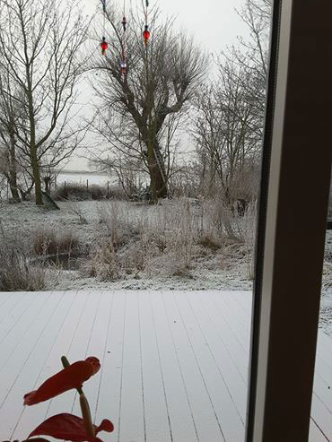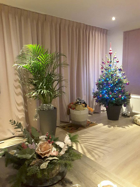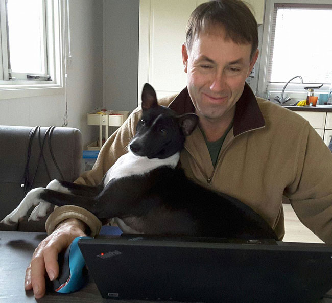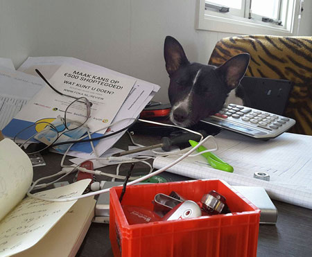 We even could find a spot for a little Christmas tree. Kees has to share his home office with the basenjis, but they are a big help..
