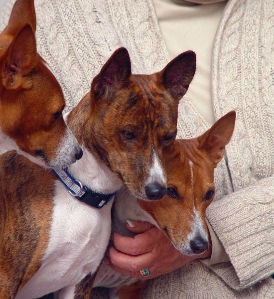CH SunDiata's Pi R Squared JC ~ 30 November 2004 - 23 December 2016 It is with a very heavy hearts that we announce the passing of our dear Pi yesterday. Ch. SunDiata's Pi R Squared, JC, sired more than 20 champions in the US and Europe, as well as many very very smart performance dogs with titles to prove it. He is sire and grandsire to some of the top agility Basenjis in the world, via Susan Marsicano, and also half brother to sire/grandsire of some of Linda Siekert's fabulous agility performers. Pi was born at our house, and has been through our many moves around the country as my husband Jim went to medical school at age 50, residency, and now here in Pennsylvania with his own practice. Pi was always with us, except for the 6 months he bunked with Bob and Charlene Collins in Phoenix during Jim's 4th year. He had some fabulous show wins, including specialties, and was widely known for his kind, sweet disposition and intelligence. Ingenious, clever, Pi loved to run free in the forest of Flagstaff, Arizona, he sometimes led escapes in New Jersey, where he would happily tour the neighborhood, then come back to the front door as if this were normal. There is a big hole left behind you, little buddy. May "flights of angels wing thee to thy rest."