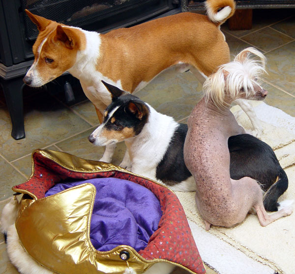 My speedy handsome brindle Basenji Boy, Chili, passed away after a ruptured splenetic hemangiosarcoma. He wasn't finished with his lifetime of adventure yet, made evident by the fact he was hiking up mountains in the days before. Despite his good physical condition, Chili knew it was his time, wherein he greeted me with an apologetic sigh and cuddle at the vet hospital. Weak and imbalanced, but still keeping his keen dark-golden eyes locked on me... we said our goodbyes, and I let him know he had seen me through this one last challenge (and I instantaneously flashed through the half-dozen times or so that I thought he was about to die previously - the least of which is when he ran off into the Sonoran Desert after some cattle in 105F heat). Thanks to Dr. Long of Prevost Animal Clinic, I was able to take Chili out to his most favourite park, to bask in the warm fall sunshine on Vancouver Island, where he sat on my lap and sniffed the coming winter in the crisp air... His journey over the Rainbow Bridge came easily and without a moment of regret. Nefertiti checked under the blankets of the various Basenji spots in my house for the next two weeks... I sometimes wish she would find him there too. Tom Elliot Jacob
