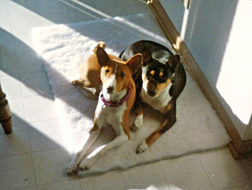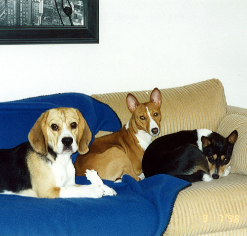 By the time our daughter was a toddler, Jim and I could see we had a dog lover on our hands. I would spend many hours with her at any and all neighbors who had dogs she could pet and play with. One day I said to Jim, “we should just get a dog of our own”. We started attending local dog shows and reading books about dog breeds. The AKC Complete Dog Book was one book we brought home from the library over and over. We wanted a small to medium size dog. At first we liked the Border Terrier and Jim had grown up on stories about his dad’s Scottish Terrier, Angus. But when we saw the photo of the Basenji in the AKC book we were fascinated and had to find out more. The first things we heard about basenjis were not good. Not knowing any breeders and in fact not having seen one in person, I called an ad that appeared in our local newspaper one Sunday: “for sale - 2 basenjis”. The gentleman who answered the phone had nothing good to say about these 2 dogs. By the time I hung up, I told Jim that I didn’t think the Basenji was for us. But…we still kept thinking and talking about basenjis, and reading the AKC breed description over and over. In the fall of 1986 I did a little digging (pre internet days) and found the breeder referral list from the Waukesha Kennel Club. On that list was Lu Hewes of Dokhues Basenjs. Lu was a former BCOA secretary and former president of the local club, The Basenji Club of Southeastern Wisconsin. I called her to talk about the breed, and the rest, as they say, is history. By the time our first phone call ended, we had an invitation to spend an afternoon at Lu’s to meet her basenjis and learn more about the breed. The very next Saturday found us in Lu’s backyard with 4 or 5 basenjis. It was a striking moment I will never forget: approaching her fence and seeing all these little red and tri dogs running around… but not a sound. Although we arrived assuming we would talk about getting a puppy from Lu’s next litter, we left with information about a 3 year old bitch Lu bred, sold to a show home, and was getting back soon because the couple had a baby and no desire now to keep their basenji they called Katie. After some discussion at home, we contacted the family with Katie and arranged to meet this sweet little tri girl. We brought her home with us that day and never looked back. She was homesick at first but she loved to go jogging with Jim and they became a familiar sight in our neighborhood as they ran together for years. She was a lovely example of the breed and a lovely temperament for a family’s first dog. She was a big yodeler especially when I was making her dinners. With Lu’s encouragement I tried showing Katie and although I never managed to finish her, we did win all of her small points. We took some obedience lessons and showed, but didn’t qualify, in Novice obedience at the 1993 national in St. Louis. She loved to lure course so we did some coursing too. Amy showed her in juniors at our BCOSW B matches before she was old enough to show at AKC shows. Katie let Amy practice stacking her over and over…she was very patient with children. Katie lived a long and I hope happy life with us from 1986 until we helped her over the bridge at age 15 in 1999. By that time we had added 2 more basenjis to our family and become breed fanciers. Because of Katie we joined the BCOSW and then the BCOA and made many wonderful friends all over the world who love basenjis like we do.