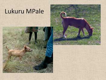 In August 2008 the American Kennel Club announced that it opened, for a limited time, the Basenji studbook in order to offer an opportunity to import dogs from their native land. In anticipation of this momentous act, four dogs were imported from the Congo under the moniker "Lukuru" in 2007. 70 years ago the Blean dogs came from an area approximately 340 kilometers (~210 miles) from what is today central Lukuru (as the crow flies [i]). In the Lukuru, the dogs continue to fulfill the same function for which they originated long before written time. Please permit me to introduce you to the four Lukuru imports. Each picture shows the individual in the Congo as a puppy (image on left) and today as an adult (image on right). 1) Lukuru na Liboso Mopaya is a red and white bitch born January 2007 in the village of Itunga and bred by the NDengese people. (photo 1) 2) Lukuru Amisi is a red and white dog born May 2007 in the village of Luapa and bred by the Iyaelima people. (photo 2) 3) Lukuru MPale is a red and white bitch born June 2007 in the village of Yasa and bred by the Ikolombe people. (photo 3) 4) Lukuru Lema is a red and white bitch born June 2007 in the village of Yasa and bred by the Ikolombe people. (photo 4) Lema and MPale are the only two puppies from their litter. Mopaya is from a village about 45 km (~30 miles) north of where Lema and MPale were born; their birth villages are separated by an impassable river barrier. Amisi was born an additional 320 km (~200 miles) north of the birth place of Mopaya, in the very center of the vast ancient equatorial forest. MPale and Lema are considered to represent a single founder event.