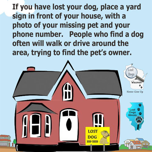 9. Have flyers or at least pictures and wording for flyers ready to go on your computer. You will not do a good job on them while in the throes of missing your dog. Andrea Stone recommends http://www.missingpetpartnership.org/recovery-tips/posters-5555/ for instructions on making a good flyer.