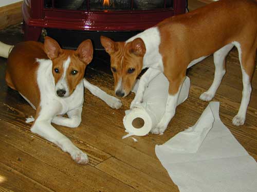 Basenjis & white papery stuff. .is the NEW Contest!