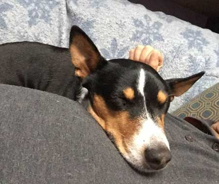 | Debby Mayer & Sizzle {Ed. This repeats from November, as is still relevant} Sizzle: WHERE ARE YOU Debby: Around the corner, in the bedroom S (pokes head around corner): I couldn't see you. Oh . . . you're making the bed. D: Yes. S: That means we have to walk around in the cold for an hour. D: The rain has stopped. S: Small favor. You said we would go someplace warm. D: Walking in the cold is what gets us there. S: Can we go to the coffee bar? D: I was thinking we would. But you have to poop first. S: It's too wet to pee, let alone poop. D: No coffee bar till you poop . . . ------------------------------------------------------------------ Sizzle: It was time for us to lean together, on the couch, and you weren’t there. D: I was making my dinner! S: No excuse. *All conversations with Sizzle are verbatim. Debby: Sizzle, I don't know how I'm going to get us out of here. Sizzle: You'll think of something, Debby. D: —Thank you, Sizzle dear. Want to help prewash the utensils in the dishwasher? S: Yeah, [Slurp-slurp-slurp . . . ] Tamara Allen Someone is giving me that "put down the phone and let's go" look.