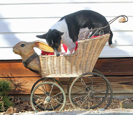First comes love, then comes marriage, soon comes Lisa home with a bunny carriage.