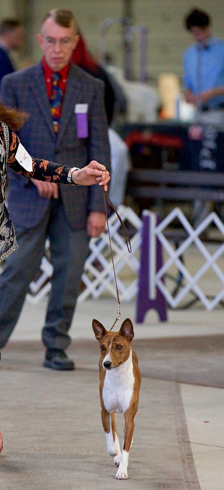 SOME BASENJI STANDARD QUOTES. Hindquarters: Medium width, strong and muscular, hocks well let down and turned neither in nor out, with long second thighs and moderately bent stifles