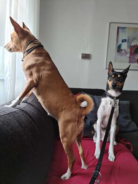 Uschi Grewe We were visiting Claudi's (my daughter in law) parents and I had to keep AJ on his leash, as he already had eaten half of the bread which was meant for our lunch. Annechien Smith Heike Rein