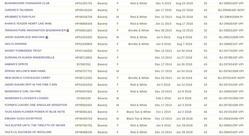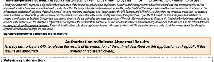 {Ed. Note that these results are perhaps not complete, because if the owner doesn't sign the above release authorozation, abnormal results remain hidden. This release authorization is on all the OFA forms.}