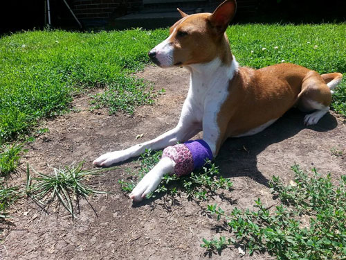 Basenjis in casts in honor of RiRi's ordeal - here & here.