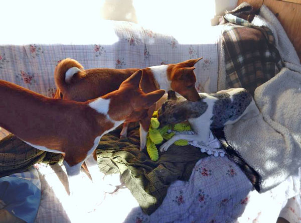 Cooper, Kohlette & Razzy with their octopus. Sharing??? |
