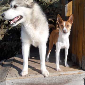We think he had a stroke, and he's gradually recovering. I don't think we can put him down now; I'm looking for indoor doggie bathrooms. He is getting very good care. He is rarely left alone, and if we're going out for more than 3 hours we take him with us. And can you believe it, he still holds rank over our other 2 Basenjis! This all reminds me of many years ago when I put so much effort into our Basenji, Sunny. Billy will be 15 on December 2, he could really use some of that positive B-list energy! Here's Billy with Willow in the days when he could still hang out in the yard with the big dogs.