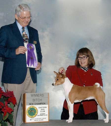 The Stewart’s Gambit took WB/BOW at the Indian Nations Basenji Specialty & next day she earned her last pt. to finish her CH.