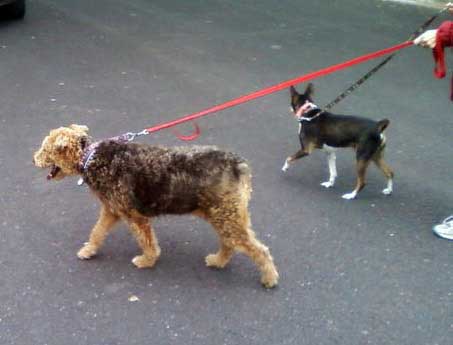 Cheryl Silver’s Hank got a new sister. “Amber--an 11-year old Airedale rescue. She is a very overweight angel and she absolutely loves the world. Yesterday she woke Hank up by licking his eyes and ears as he slept on the couch. She is a total wiggle bottom who, unfortunately, had her tail chopped off like a rottie's J but her heart is enormous.”