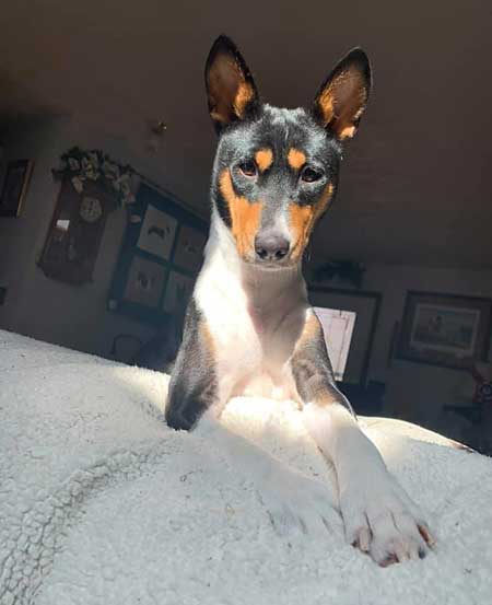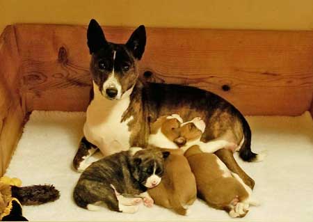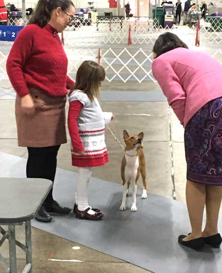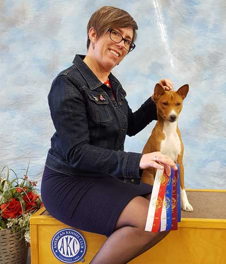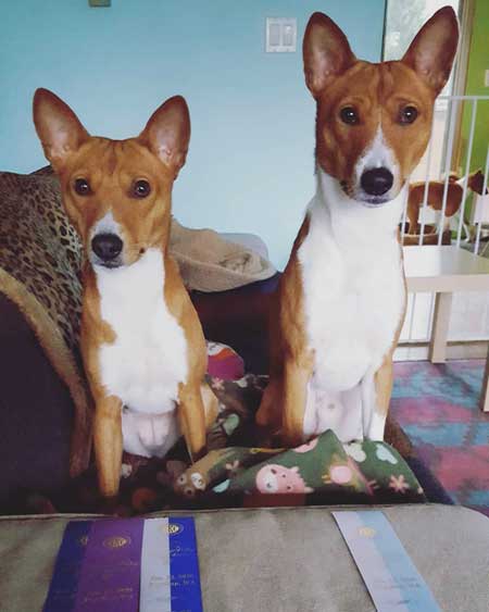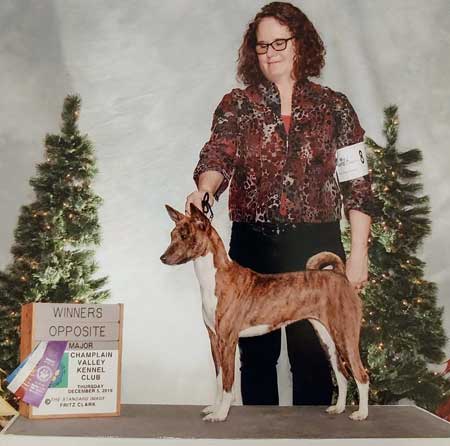 | New Titles & Kudos & New Additions: Renee Meriaux - "We picked up a few things today at the Grand Canyon State Bernese Mountain Dog Club draft test: Mosley pass #4 Open Mosley/Gibson Pass #1 Open Brace New BDDs (First golden to earn this title) Oakley/Gibson - pass #5 for Oakley New ABNDD (First basenji to earn this title), pass #3 for Gibson I think. Eli Pass #5 Novice new ANDD!! Oakley oldest passing non Berner:) End result a lot of tired dogs:) Oakley earned her Advanced Brace Novice Draft Dog. 5 passes. She worked the a berner and a golden as partners. PACH Jasiri-Sukari Bronco Busting Annie RN SC MXP5 MXPS MJP3 MJPB CAA TKA ANDD.   Sue Schulz's Teagan won a 4 point major. Pickwich's Apu Poetry in Motion TKN.  Natalie Culver's Ivy (Ivy girl) won her second point. She also competed in PeeWee class with Hannah. And they posed with Santa. Ivy is Apu Miss Kitty's Can-Can Girl.  Brenda Phillip's Zippie - "Somepuppy made her momma very very happy all weekend: CPE agility, baby-dog challenge level, 6 qualifying scores, a new Level 1 Standard title, and got Better on the 3rd day with a 100% Q rate! + 2 AKC FAST Qs "Zippie and I dipped our toes back in the agility trial waters, me committed to following Gillian's advice to Protect My Dog's Confidence and so I tried to design a FAST course that would rely on what Heather has taught us so well, and came home with sparkle ribbons to boot!" Photo by Joe Camp  New litter of puppies! Sired by my "Oberon" to Lisa Hart's "Frankie" born Jan 14th. Here is perhaps the cutest picture so far, but surely there will be more.  Karla Schreiber's Kimber - 'First time mom Kimber and first time pops, Axel, welcome their three new arrivals - a red boy, a red girl, and a dark brindle boy! They arrived a day ahead of schedule between 1:30 and 4:25 on 11 January. Kimber is being a wonderful, calm, mom. While the whelping was a bit slow compared to my others, it was otherwise uneventful. As in all things Kimber operates on Kimber-time!"  Kim McNeill's Devon - "Clearly, I am amazing, just like you probably suspected. We went to the dogshow this weekend and did something new. It's called Rally-obedience and it means mom reads signs set out and then we do the things. Our first attempt was not too good, but the judge had a stern talk with mom and she promised to do better in the afternoon. And we went back and the judge gave us a ribbon. And we went back the next day and the judge gave us another ribbon in the morning and in the afternoon, we got more ribbons AND a RO1 title with a pretty rosette. Mom was very pleased with our scores, all were in the 90's (out of 100 points). I was very pleased with mom's ability to read the signs! (that can be hard for mom since there are right and left directions and that often confuses mom) And our friend Cathi with the pretty girl dogs was so impressed she HAD to take our picture."  | Our love to Chris Klein in her battle with cancer.  Feel better to: Ashley Lorin. Karen Christensen. Clark Christensen. Lorrie Cohen. Both Lisa AND Joe Stewart are now AKC Breeders of Merit!!! Katie Campbell & Chief got their 1st agiity title, AKC JWW - and they did it with three Qs in a row! I warned Katie that this is addictive.  Andrea Stone's Pha now only needs a major to finish! "AND Gage would like everyone to know that his sisteris not the only cool person. He earned 2 points by going Select Dog, under breeder judge Penny Inan, completing his Grand Championship. Super proud of these two - loads of breed type, great temperaments and fun personalities."   Carol & Paul Mount and Zuri. Paul and Zuri have shattered all basenji agility records. Breeder is Cindy Griswold.  The Stewart's Bolt earned Two new titles in Nov LCM and LCX5! GCH DC Meisterhaus Days of Thunder MC LCX5 LCM TKP CGC THDA CA GEOD Td PD DSA ETD FCH VBE.  Linda Butterworth had quite a few absolutely fantastic months running her mom's Simba and Kate and her Aeden in agility!!!!  |