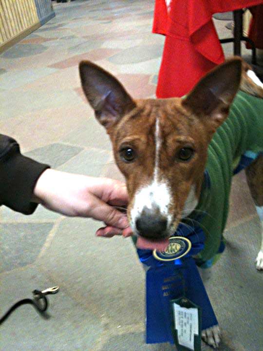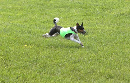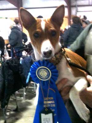 On 4/16: : Good day for the basenjis, 9 entered. Bella was 1st for 3 NAT points, L'Ox edged out his mom in the last race to nab 2nd for 1.5 NAT points and 3 GRC points bringing him to half way to his GRC in only 3 race meets, Rio was 3rd for 0.5 NAT points, Rally was 4th to grab 1.5 GRC points, and Cole was 6th for 0.5 NAT points.