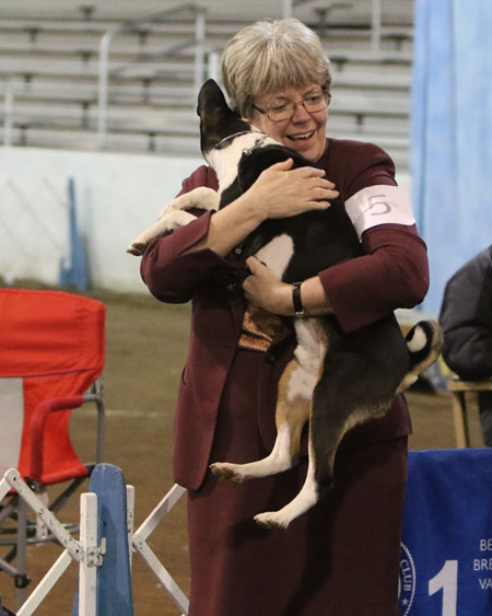 The Stewart's Bolt gets well deserved hugs. New titles - GCH, THDN, CGC, ITD, ATD, GEOD, FCh. GCH Meisterhaus Days of Thunder THDN CGC ATD DSA GEOD PD Td (VBX pending).