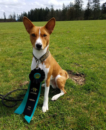 Andrea Stone's Regan got her BCOA Master Versatile Basenji title - BIF GCHB DC FoPaw's Touch of Evil at Saorsa RA SC ATD AOM MVB.