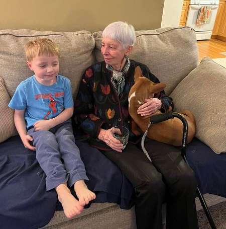 Natalie Culver's Ivy won her first race meet. Pickwick's Apu Miss Kitty's Can-Can Girl JC TKN. (Firat photo is 6 year old Nicholas, 94 year old grandmother Charlotte, with Ivy in her lap.) (2nd photo, she wants the toy.)
