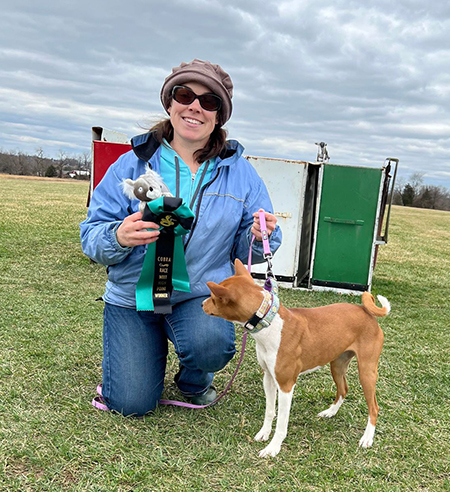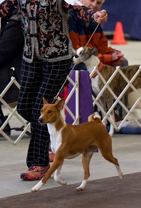 Susan Marsicano's Goldie got her AKC CHAMPIONSHIP, with a thrid major. Makes her also a BCOA Versatile Basenji Excellent. She also got 1/2 a SGRC point, racing. CH Apu La Donna e Mobile RN SC CA TKP VSWE ORC JOR VBX.