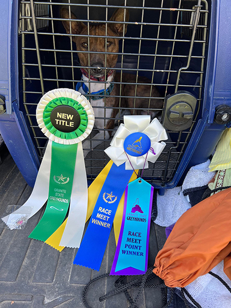 Natalie Culver's JASPER got his Gazehound Racing Championship. . Pickwick's Apu Keep on Dancing JC GRC TKN.