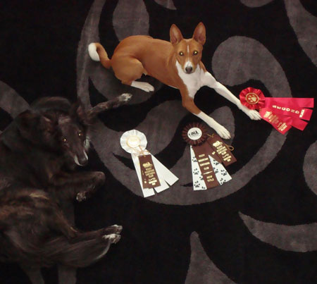 ”Mom, are you telling all our friends how awesome I was yesterday?" "I was just getting ready to do that Devon." "Are you going to tell them about how I found all the rats?" "Yes, Devon, I'm going to do that." "And how I got lots of pretty ribbons?" "Yes, Devon, I'll be sure to include that." "And how I now have RATI after my name? AND got a leg towards my RAT-novice title?" "Yes, Devon, I'll be sure to mention that." "And how the ribbons have my name on them in big letters?" "Yes, Devon, I did write your name on the back of your ribbons." "good, I think our FB friends should know all that." "Devon, should I also tell them about how your sister Zest! finished her RAT-Open title with a second place?" "Yea, I guess you could mention that too."