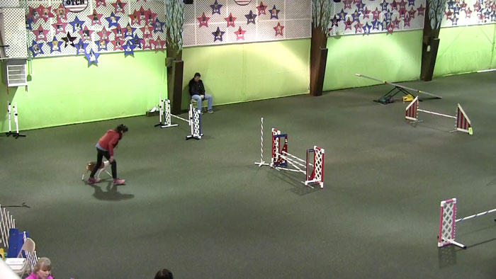 The rest of the course was a piece of cake. Holster flew over hurdles. A slow-motion video shows him weaving through the poles like a needle through cloth. He finished in 35.1 seconds with no faults.
