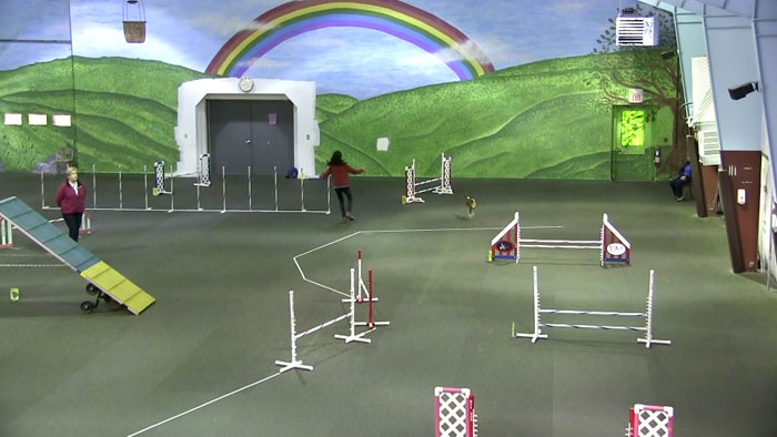 Then, early in the course, Cerilli took a risk. She directed Holster through one obstacle while moving herself in the direction of another obstacle. If she succeeded, Holster would run through the chute and Cerilli would be in position to quickly direct him through the next obstacle. If she failed, Holster would follow her uselessly toward the wrong obstacle.