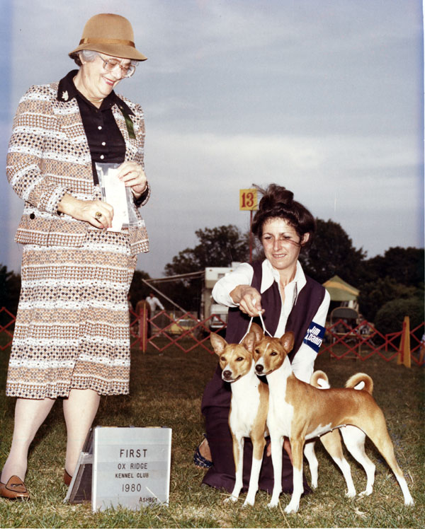 Judge Judith Felton at BCOA National Specialty, 1980. Ida & Cheat, Best Brace in Show.