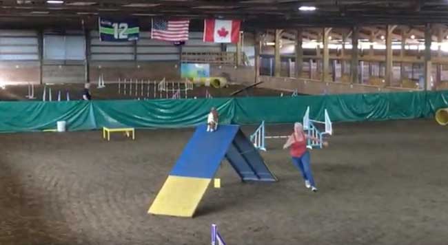 Some dogs can make the adjustment, match the handler and no one even notices or gives the dog credit for this accommodation. The ability to match the handler’s speed has nothing to do with dog’s size. It does have to do with conformation & working style, and of course cooperation by the dog. In this same way a very tall person will alter their speed to move in sync with a shorter or slower moving person.