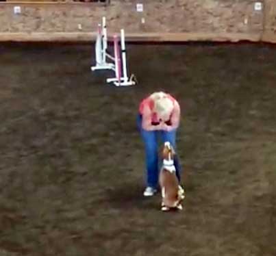 For what it’s worth, a horse whose handler keeps tension on the lead will also pull, just as a dog pulls against a pulling handler who maintains leash tension. For both animals, regardless of their size or gait, it is the handler’s responsibility to work with the animal and keep softness in the lead.
