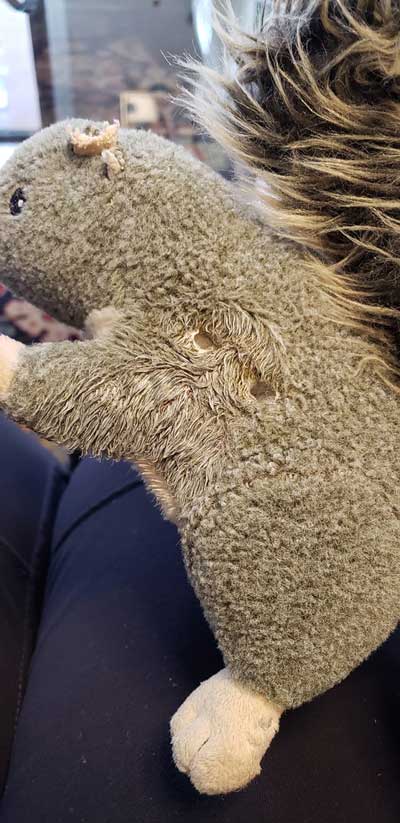 Barbara Sauceda yep, Duffy does this more than some of my others. of course I couldn't find the photo I had in mind, but found these others. the orange bunny was her favorite.